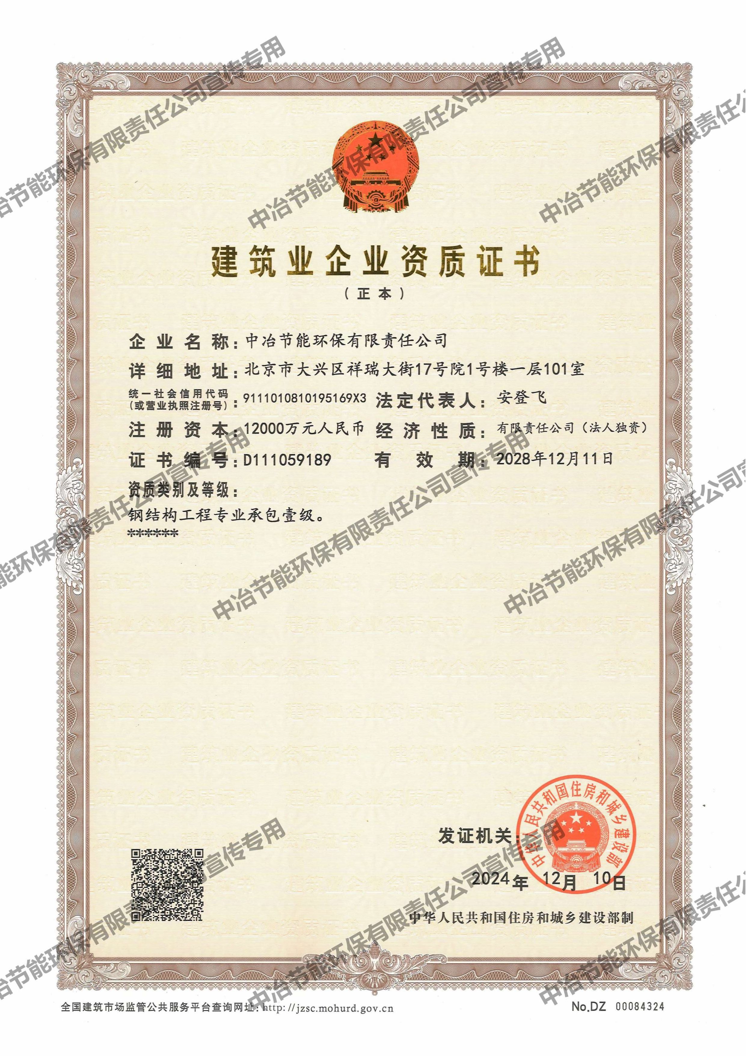 建筑業(yè)企業(yè)資質(zhì)證書(鋼結(jié)構(gòu)工程專業(yè)承包壹級(jí))
