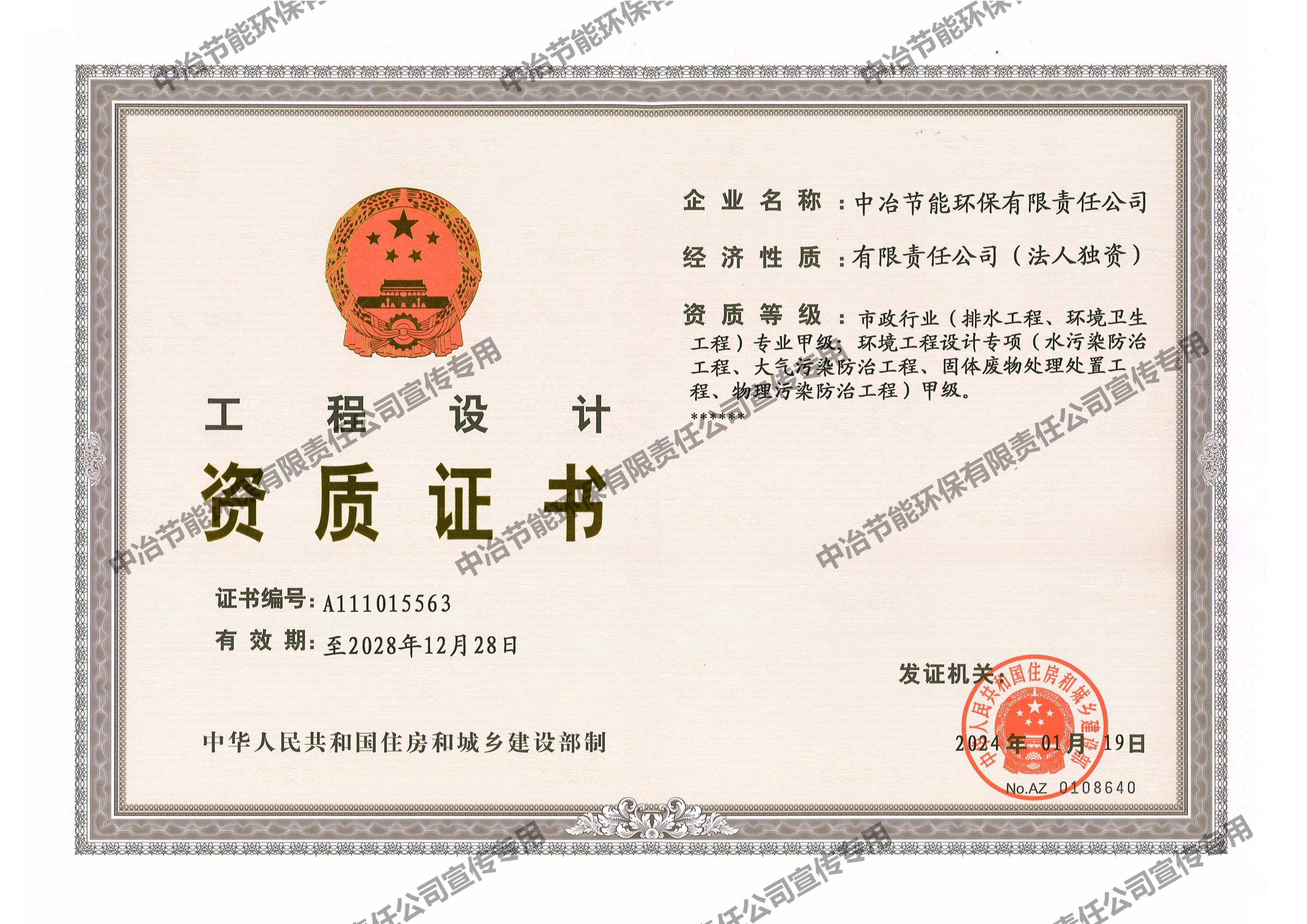 工程設(shè)計(jì)資質(zhì)證書(shū)