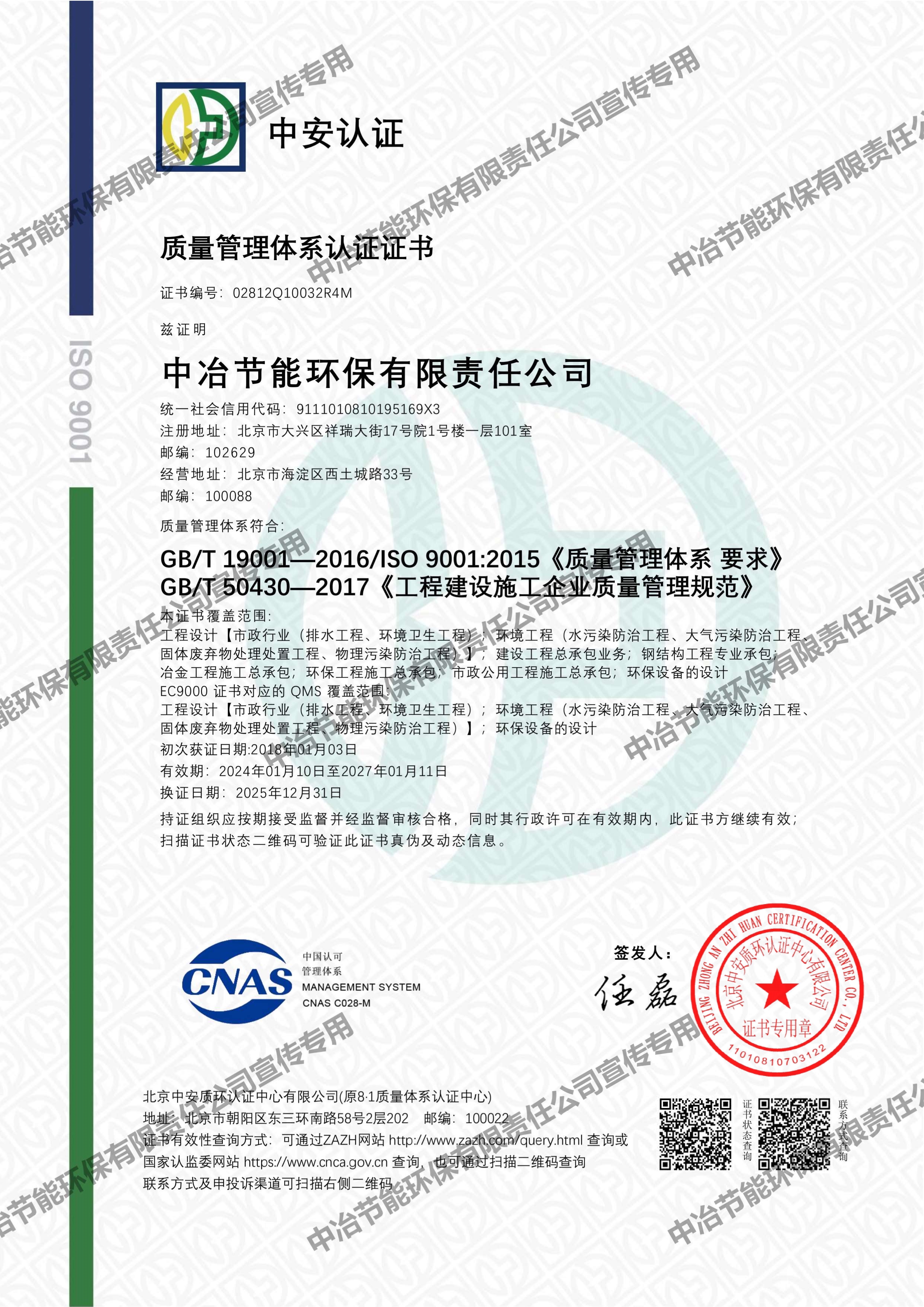 質(zhì)量管理體系認(rèn)證證書